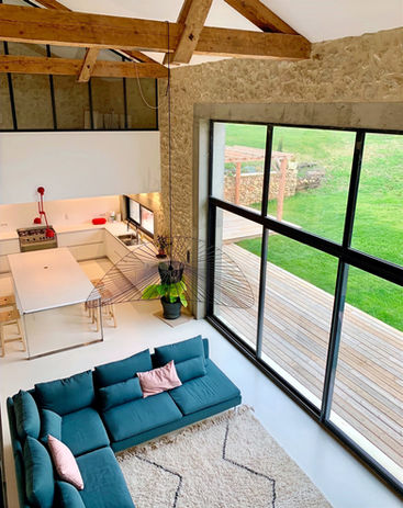 A surprising articulation on several levels , contemporary lines and noble materials which mix wonderfully around a variation of soft and pure materials, wood, steel, white concrete and workshop partitions. A decor conducive to rest and well-being is offered to you.